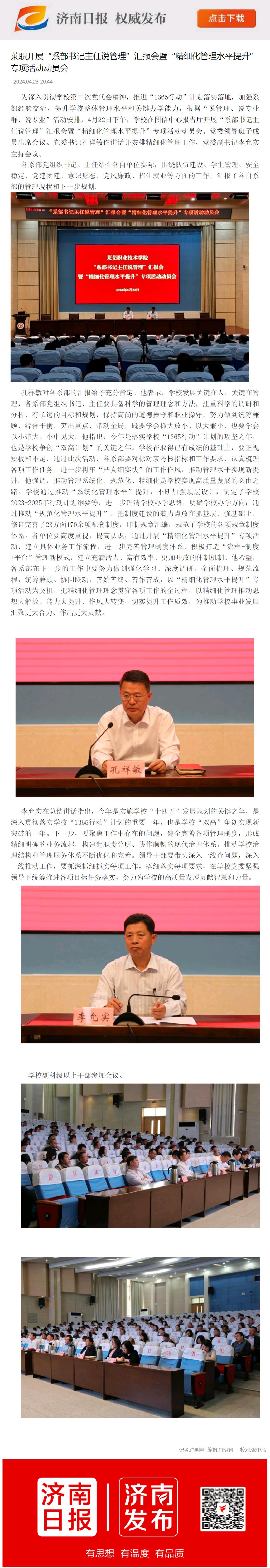 【济南日报】莱职开展“系部书记主任说管理”汇报会暨“精细化管理水平提升”专项活动动员会