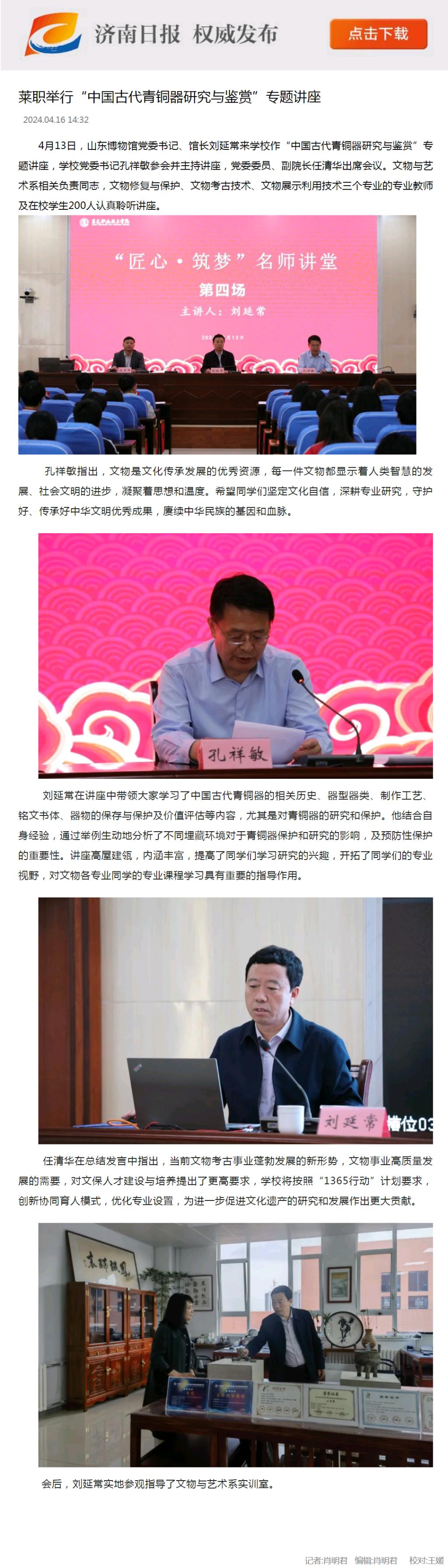 【济南日报】莱职举行“中国古代青铜器研究与鉴赏”专题讲座