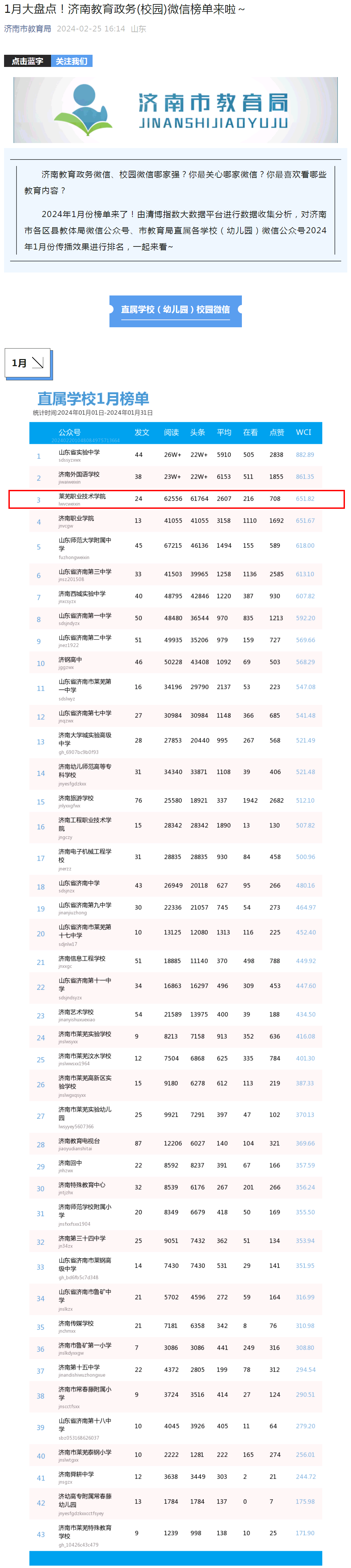 【济南市教育局】1月大盘点!济南教育政务(校园)微信榜单来啦~