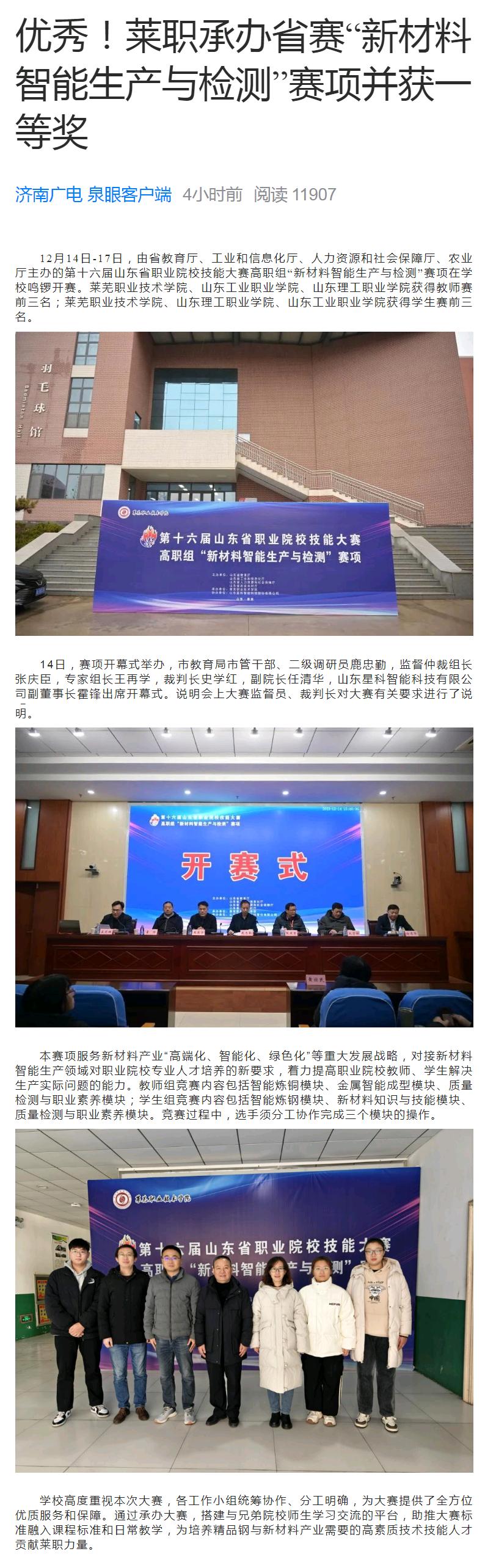 【济南广播电视台】优秀!莱职承办省赛“新材料智能生产与检测”赛项并获一等奖