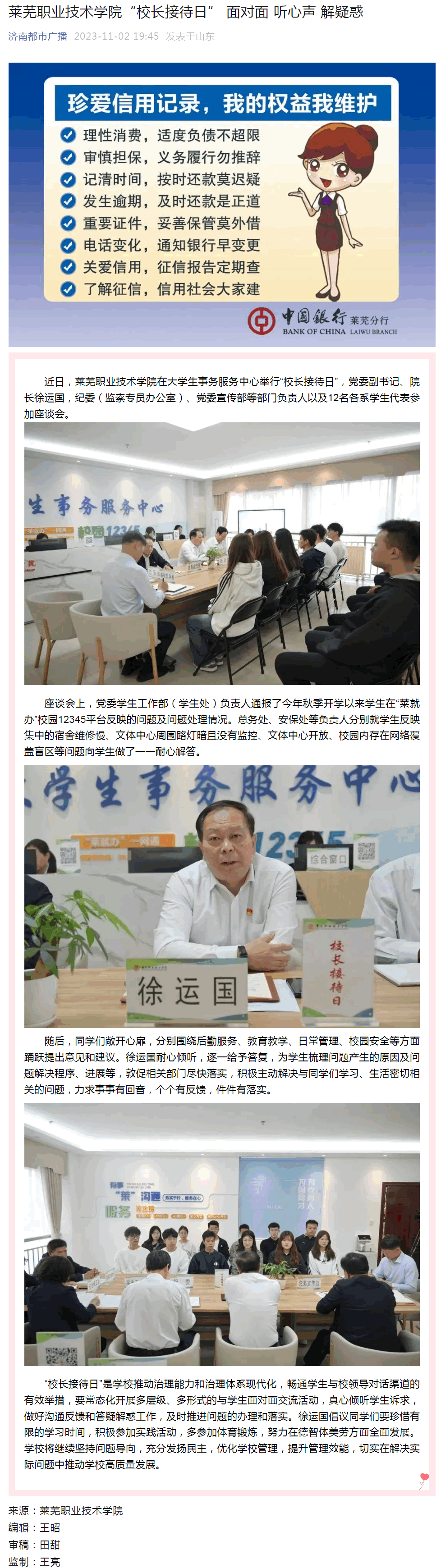 【济南广播电视台】beat365在线唯一官网“校长接待日” 面对面 听心声 解疑惑