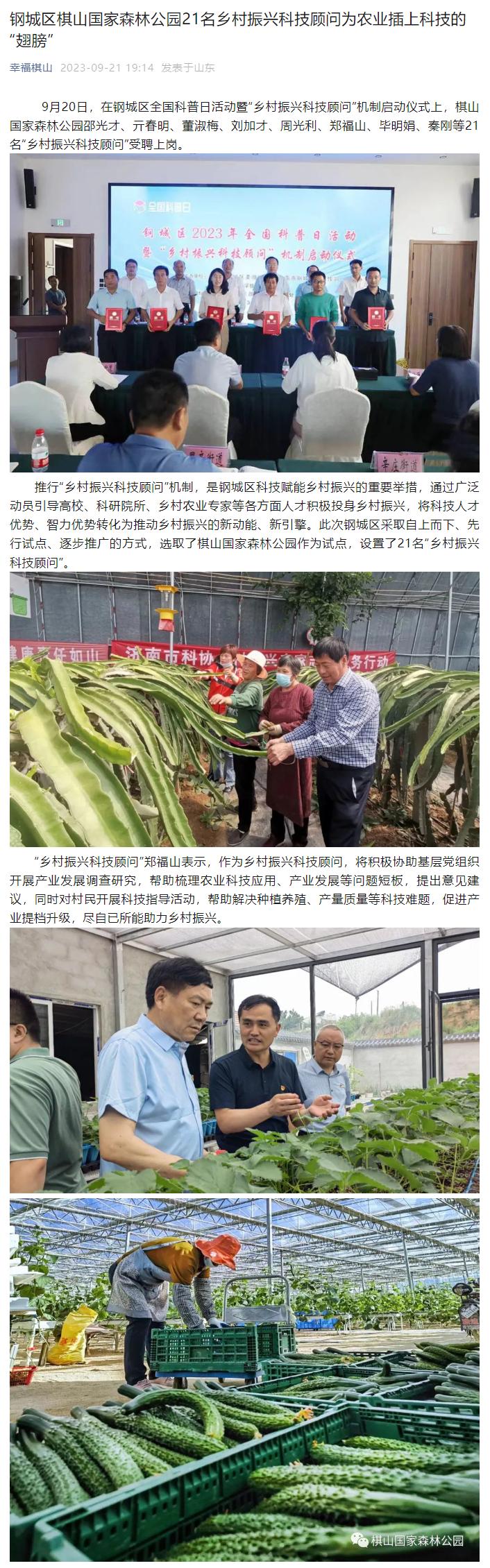 【幸福棋山】钢城区棋山国家森林公园21名乡村振兴科技顾问为农业插上科技的“翅膀”