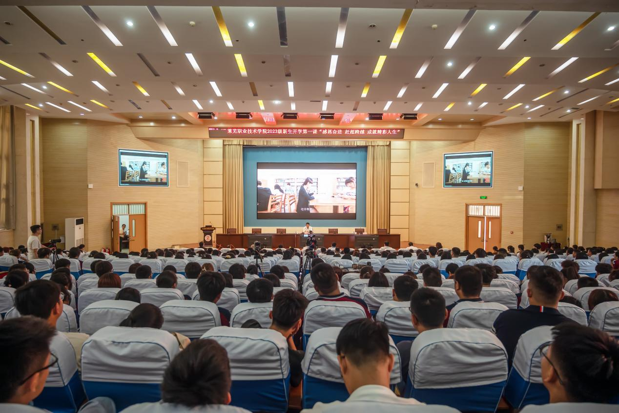 孔祥敏以图文、视频的形式,带领同学们纵览莱职发展历程、校情校貌,介绍了学校的办学定位、办学目标和人才培养特色,列举了莱职优秀校友的创业就业求学故事。他强调,同学们要向榜样学习,争做有理想、敢担当、能吃苦、肯奋斗的新时代好青年,不负韶华、不负时代,在青春的赛道上奋力奔跑,跑出当代青年的最好成绩。