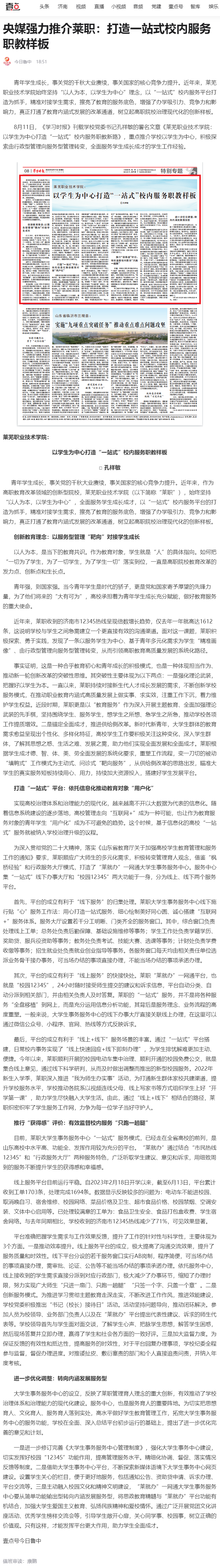 【齐鲁晚报】央媒强力推介莱职:打造一站式校内服务职教样板