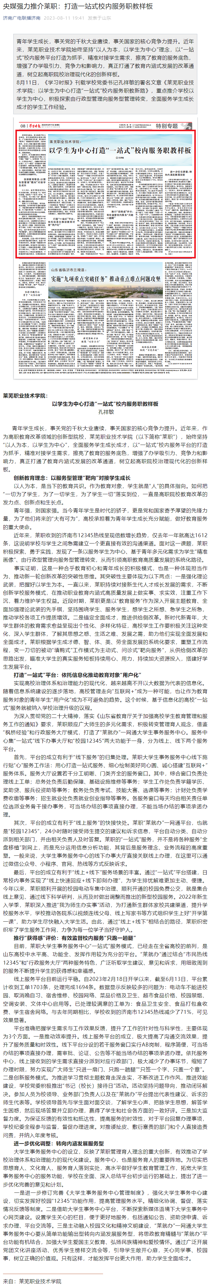 【济南广播电视台】央媒强力推介莱职:打造一站式校内服务职教样板