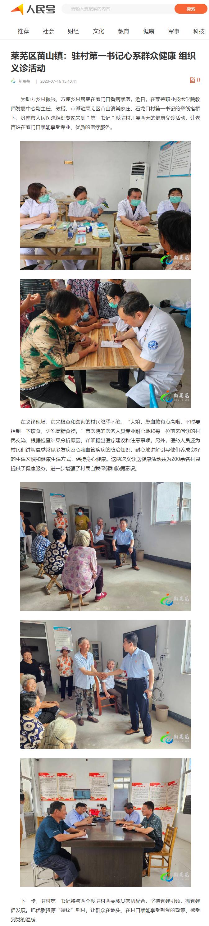 【人民网】莱芜区苗山镇:驻村第一书记心系群众健康 组织义诊活动