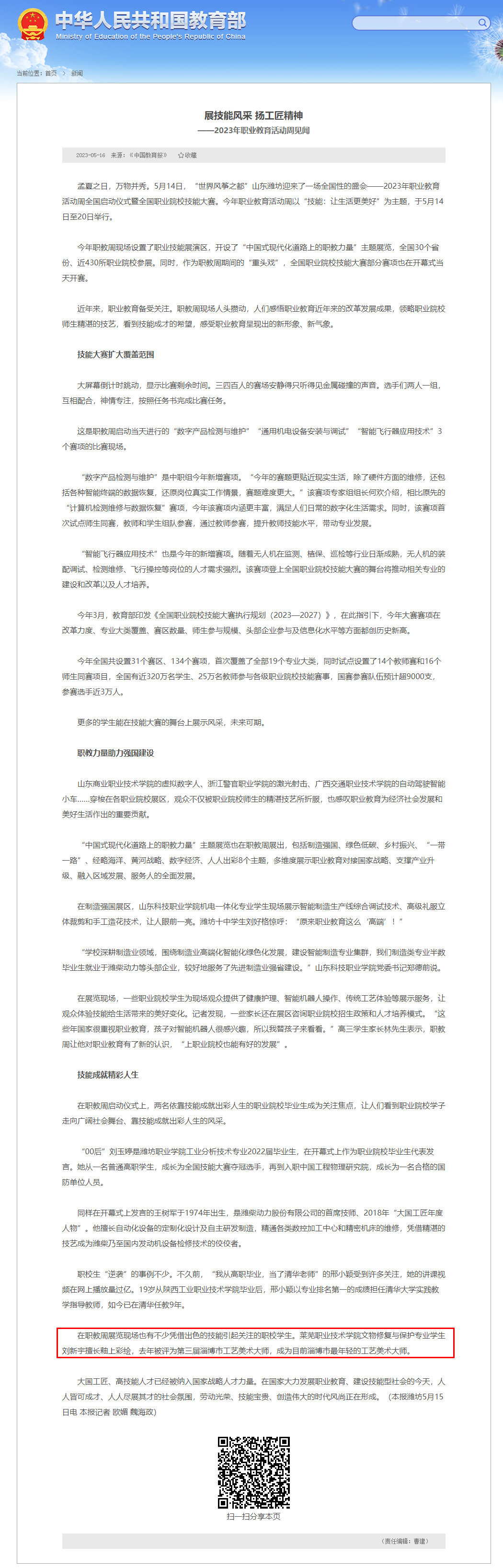作者:      编辑:       责任编辑:柳俊波      来源:中华人民共和国教育部官网     发布日期:2023年05月16日    点击量: