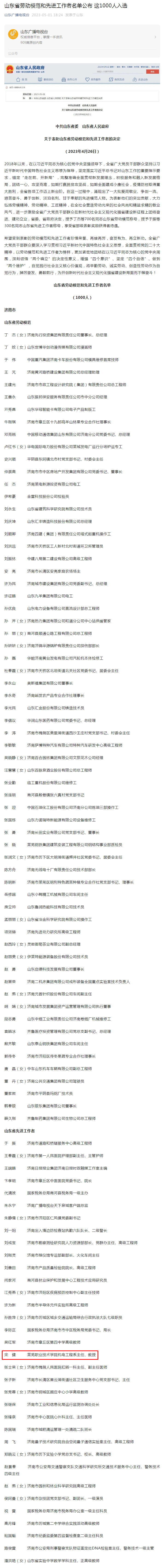 【山东广播电视台】山东省劳动模范和先进工作者名单公布 这1000人入选