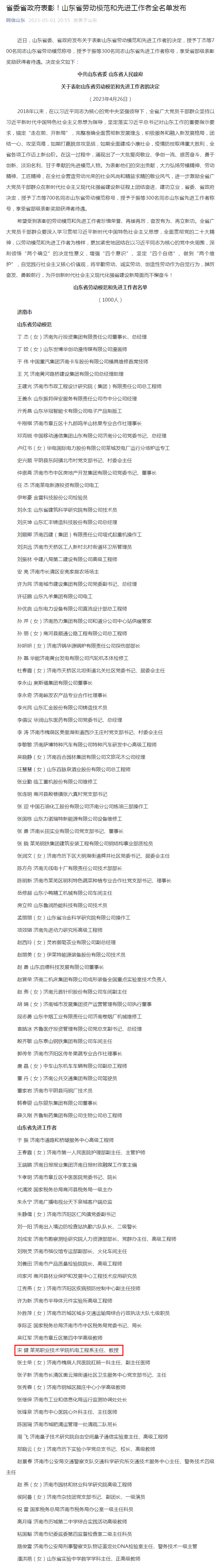 【网信山东】省委省政府表彰!山东省劳动模范和先进工作者全名单发布