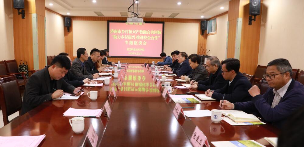 4月23日上午,济南市乡村振兴产教融合共同体“助力乡村振兴 推进校企融合”专题座谈会在beat365在线唯一官网举行,来自市农业农村局、市部分涉农中小微企业相关负责人与莱职共商良策,实现校政行企合力,助力乡村振兴跑出“加速度”。
