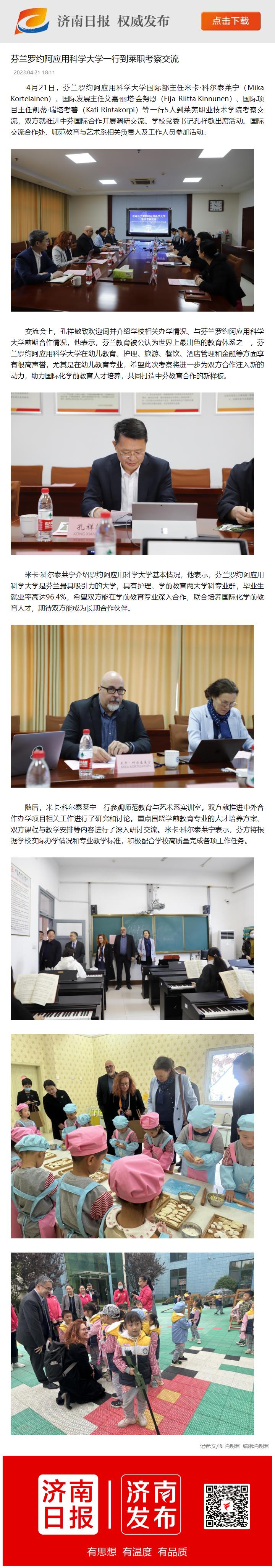 【济南日报】芬兰罗约阿应用科学大学一行到莱职考察交流