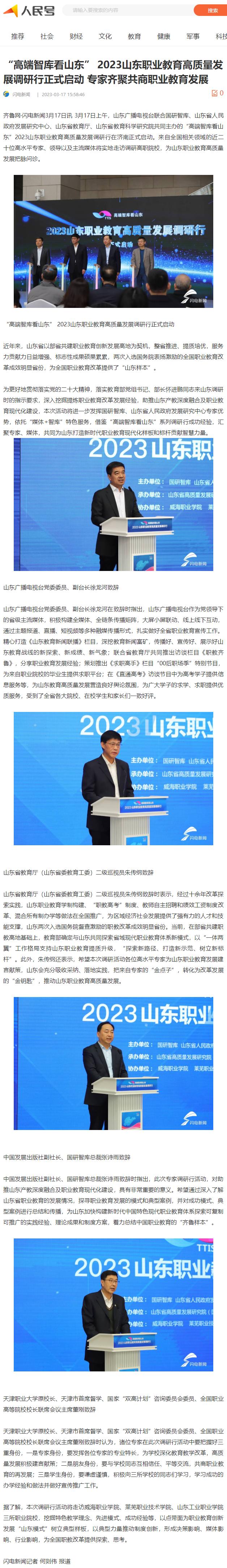 【人民日报】“高端智库看山东” 2023山东职业教育高质量发展调研行正式启动 专家齐聚共商职业教育发展