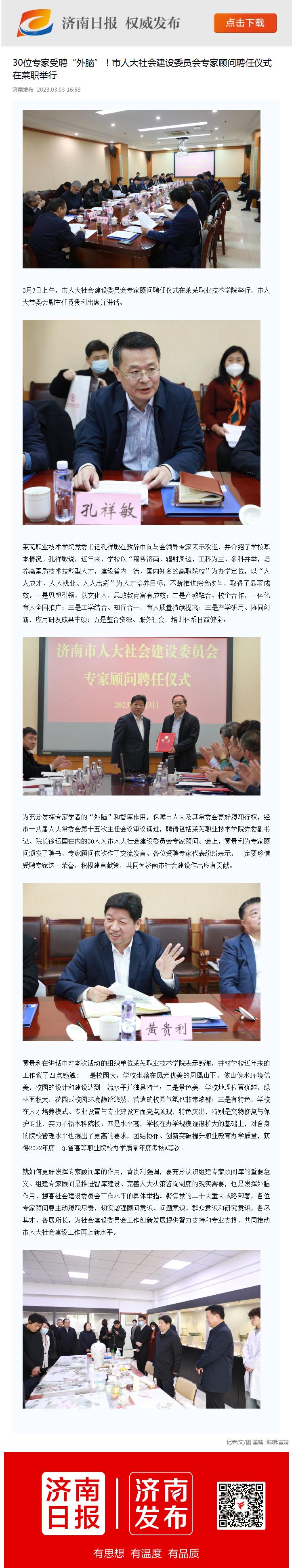 【济南日报】30位专家受聘“外脑”!市人大社会建设委员会专家顾问聘任仪式在莱职举行