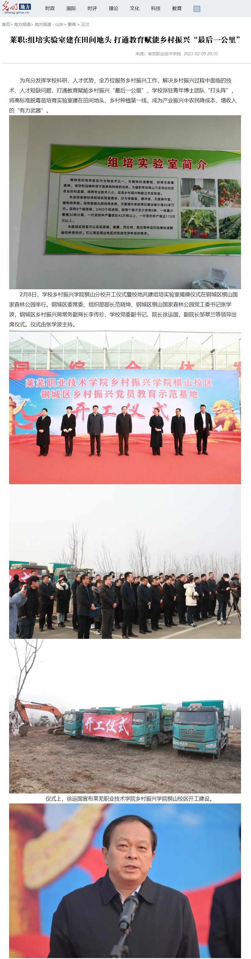 【光明网】莱职:组培实验室建在田间地头 打通教育赋能乡村振兴“最后一公里”