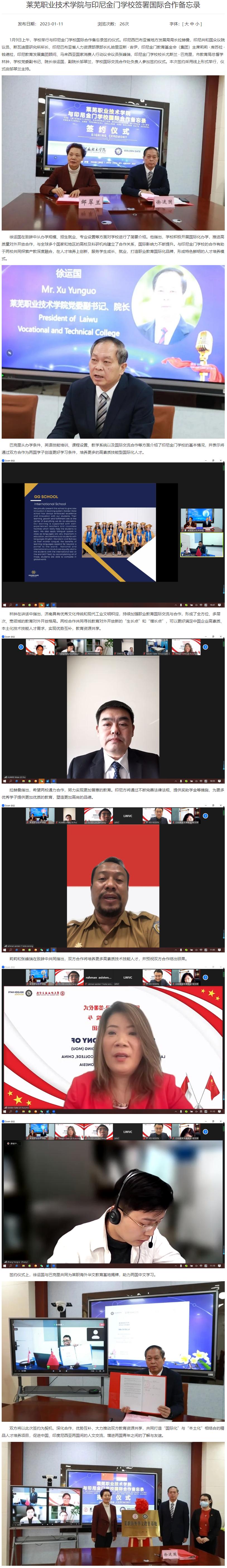 【济南市教育局】beat365在线唯一官网与印尼金门学校签署国际合作备忘录