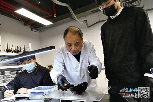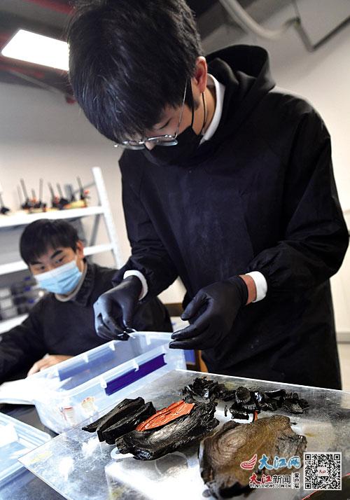“这一步是干燥,把文物整体定型后,还要把漆皮和残块粘上去。”实习期满后,姚成栋留在了工作站,成为一名文物修复师。采访中,他如数家珍地向记者介绍每一项工序。除了姚成栋外,这个漆器修复团队的另外4人也来自同一学校,且基本为“00后”。