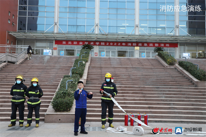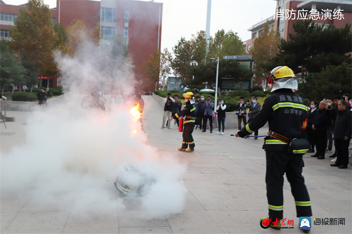 演练结束后,学校邀请济南市莱芜区应急救援大队消防员作消防安全知识培训,讲解与示范了灭火器的使用方法、消防水带抛接、发现火情后如何疏散逃生等常用消防应急知识。在认真听讲及观摩后,部分同学分批进行了灭火器现场演练实际操作,亲自体验了现场灭火的过程。