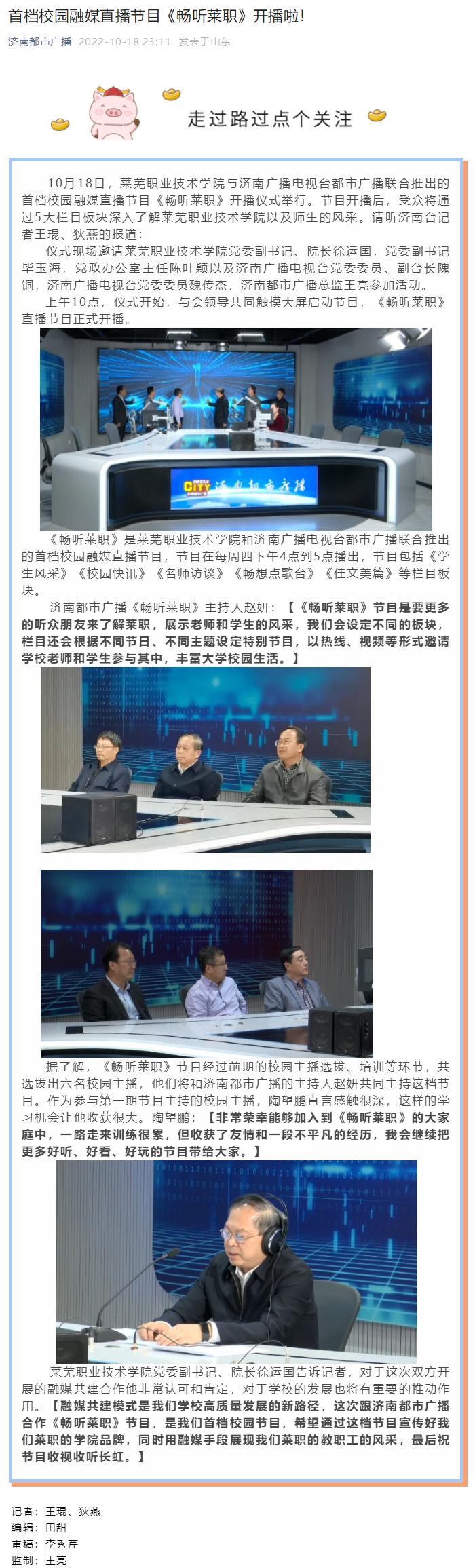 【济南广播电视台】首档校园融媒直播节目《畅听莱职》开播啦!