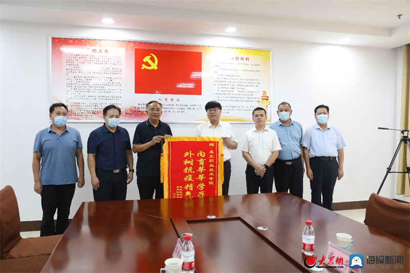 李传宝对疫情防控期间学校给予的支持表示感谢,他表示学校紧密配合属地做好疫情防控工作,措施有力、科学精准,构筑起牢固的疫情防护网;莱职学子在核酸采样工作中不惧危险、兢兢业业、任劳任怨,充分彰显了医护工作者的责任担当和大爱精神。同时,在教师节即将来临之际,对全校教职工表示节日慰问,并送上“內育莘莘学子心 外树抗疫精气神”锦旗。