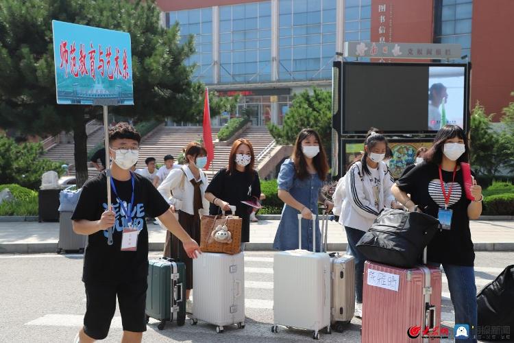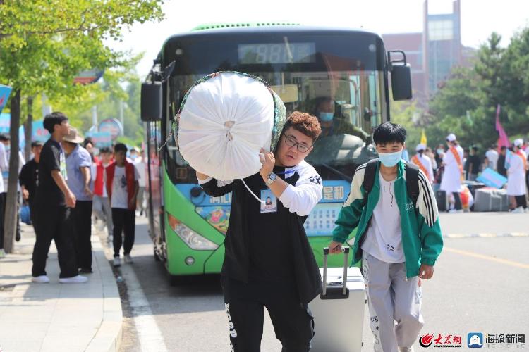 因疫情防控需要,记者看到,由学校安排志愿者协助新生入校完成报到事宜。进校学生需经过严格核验健康码、行程卡、48小时内核酸检测阴性证明、测温、身份验证等一系列程序后方可进入校园。新生进校后统一乘坐校内公交车至迎新点办理报到登记。