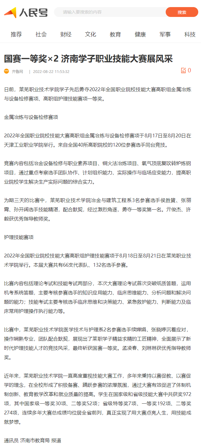 【人民日报】国赛一等奖×2 济南学子职业技能大赛展风采