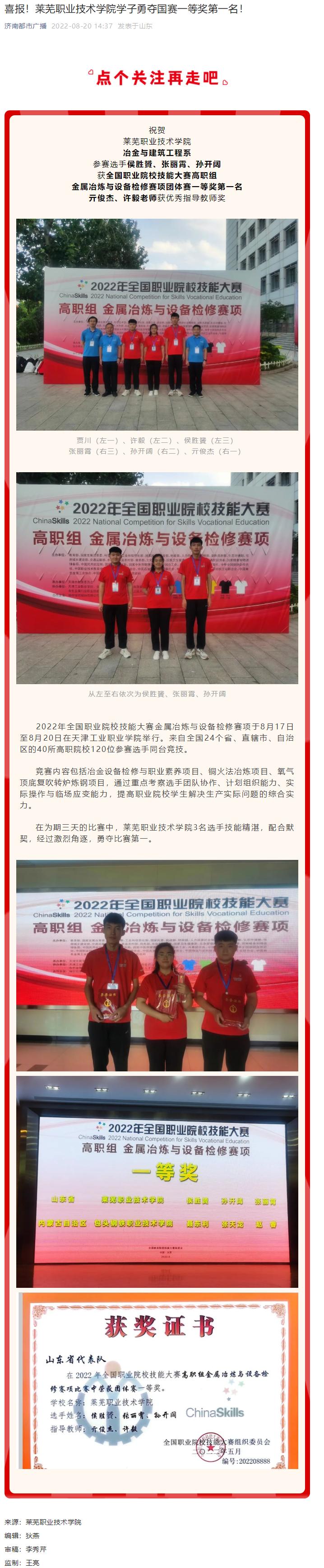【济南广播电视台】喜报!beat365在线唯一官网学子勇夺国赛一等奖第一名!