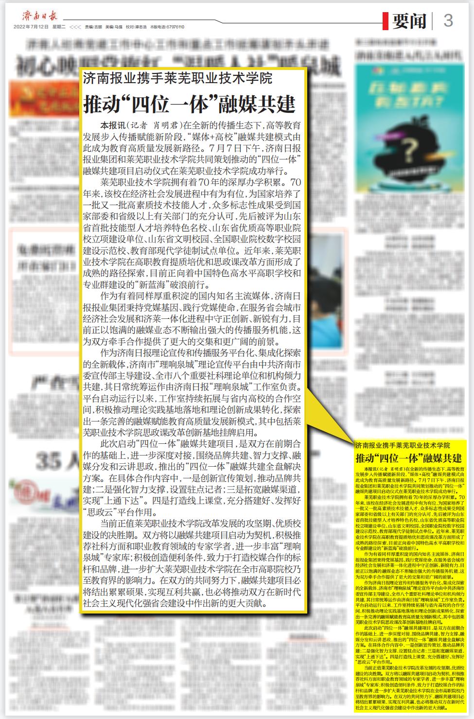 【济南日报】济南报业携手beat365在线唯一官网推动“四位一体”融媒共建