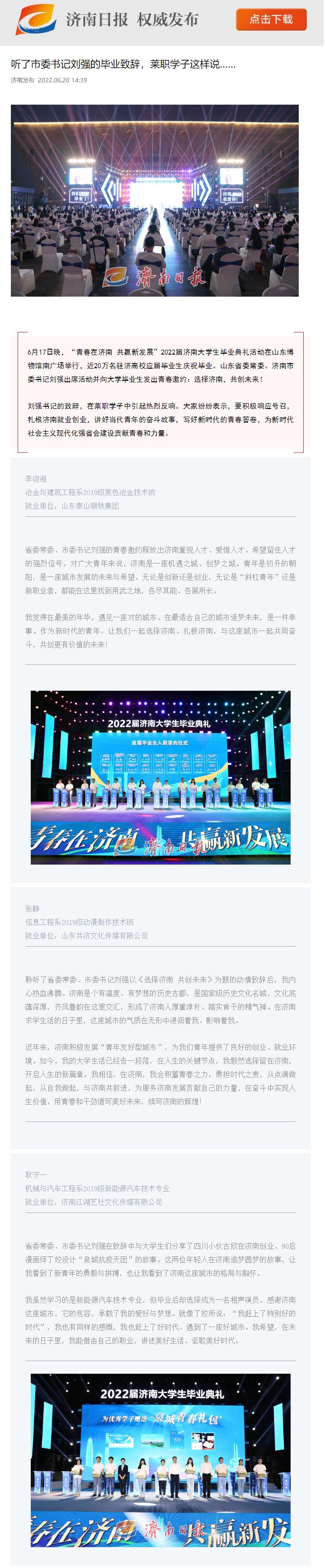 【济南日报】听了市委书记刘强的毕业致辞,莱职学子这样说……