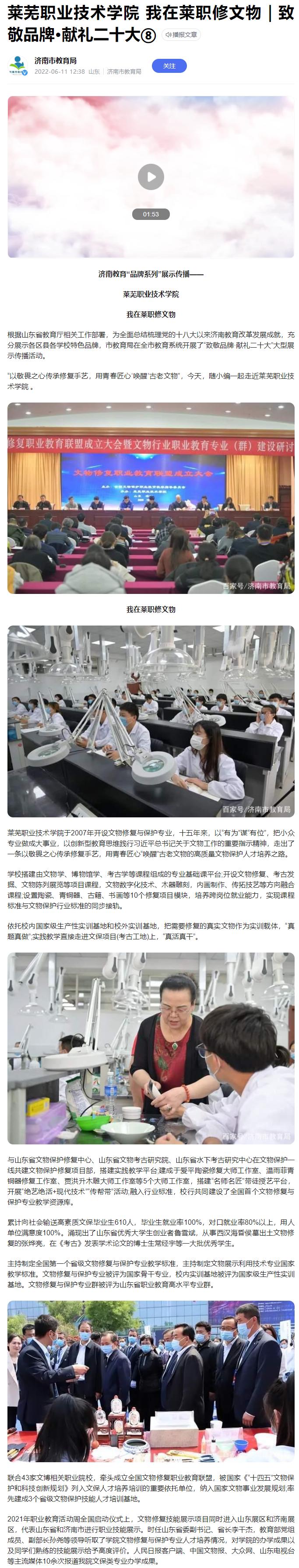 【济南市教育局】beat365在线唯一官网 我在莱职修文物|致敬品牌·献礼二十大⑧