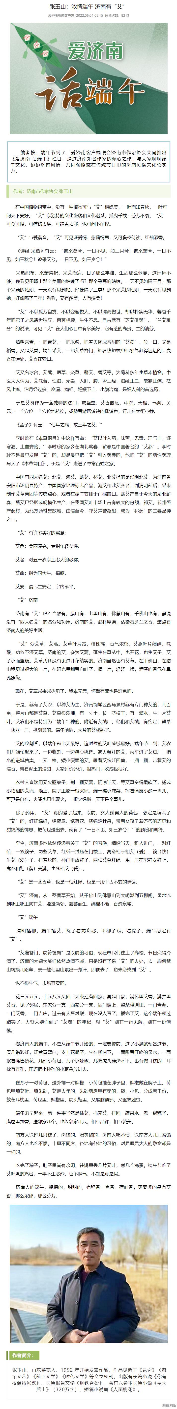【济南日报】张玉山:浓情端午 济南有“艾”