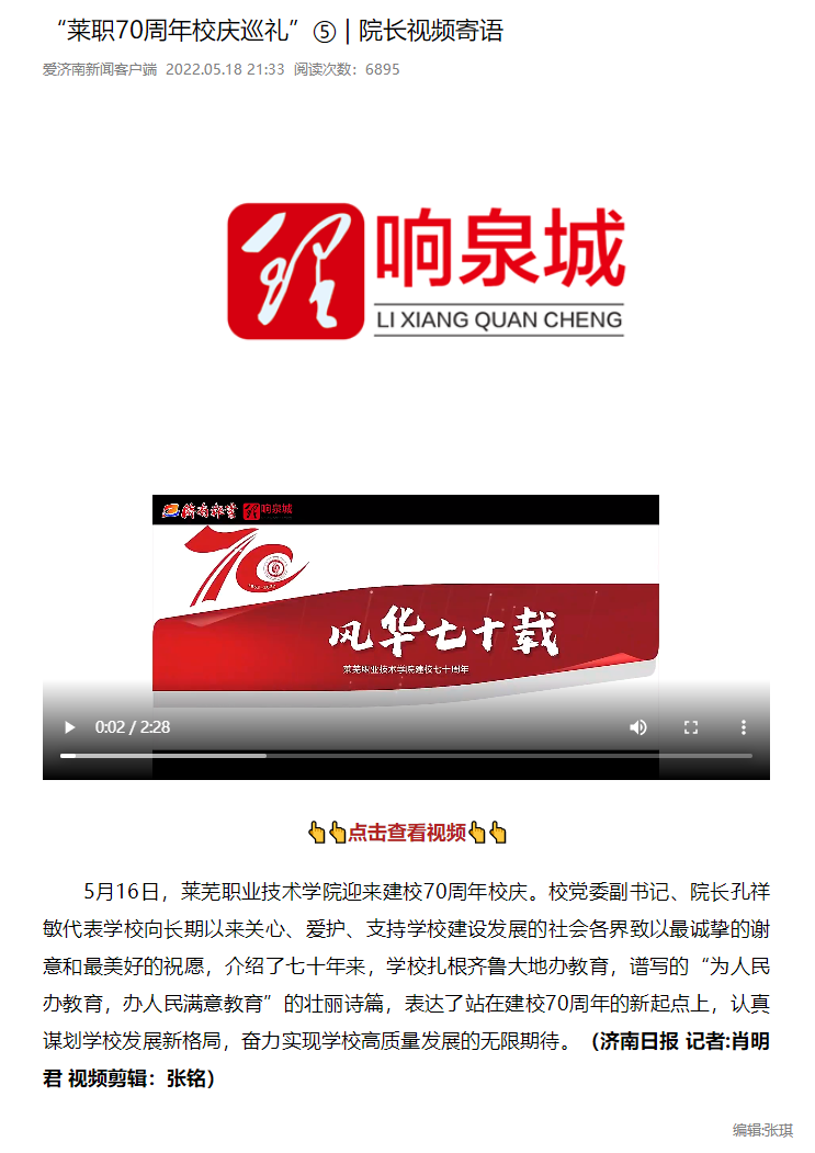 【济南日报】“莱职70周年校庆巡礼”⑤ | 院长视频寄语