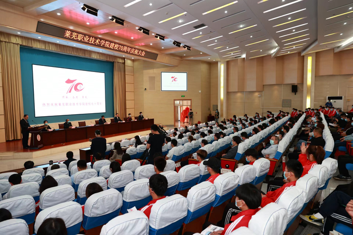 伴随着庄严的国歌声,上午9时,庆祝大会正式开始。学校党委副书记毕玉海宣读省教育厅、市教育局、莱芜区人民政府、兄弟院校、泰山钢铁集团等贺信。随后,学校党委书记董海燕致辞,学生代表献礼、师生代表献词,与会人员参观师生书画展、教学成果展、摄影展等展览。