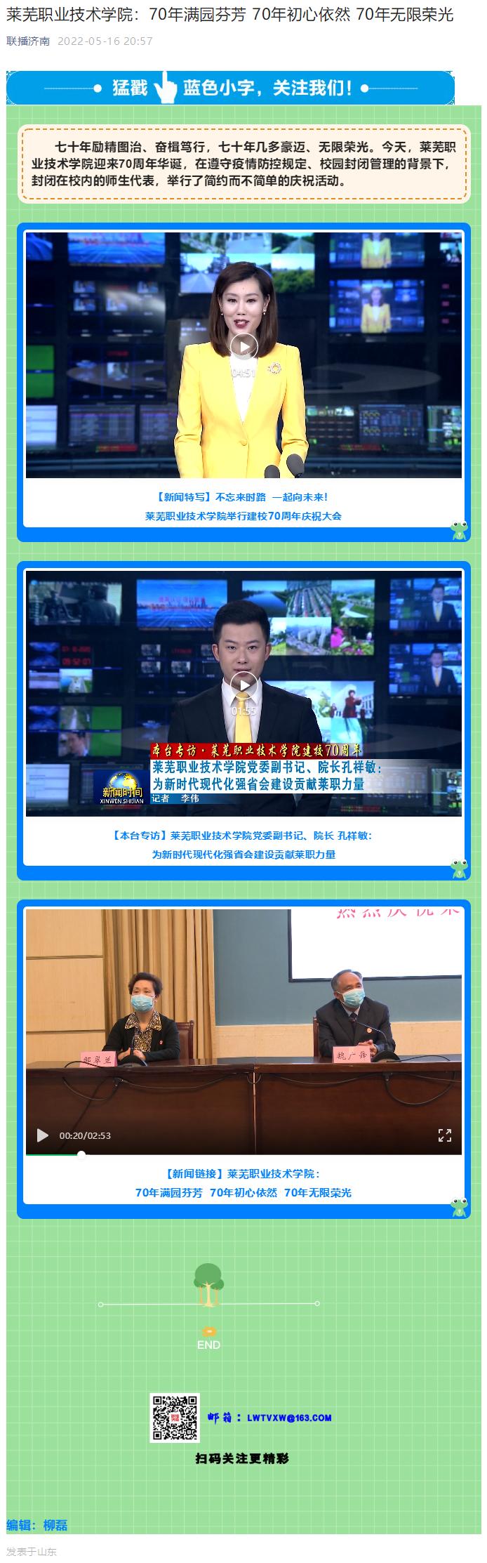 【济南广播电视台】莱职:70年满园芬芳 70年初心依然 70年无限荣光