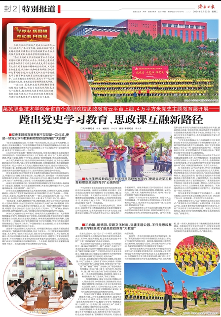 “今天上线的大学生思政教育云平台是我省高职院校首家思政云平台。百年党史展既是学校贯彻落实习近平总书记在党史学习教育动员大会上的重要讲话精神的生动实践,又是传承红色基因、践行初心使命的重要举措。今天两件大事同时推进,标志着beat365在线唯一官网党史学习教育和思政教育互融互通迈出坚实一步。”山东省教育厅原副厅长、省关心下一代工作委员会副主任、省教育基金会理事长陈光华说。