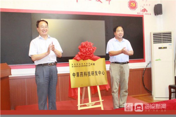 学院党委副书记与紫光生态园有限公司总经理李奉胜共同为中草药科技研发中心揭牌