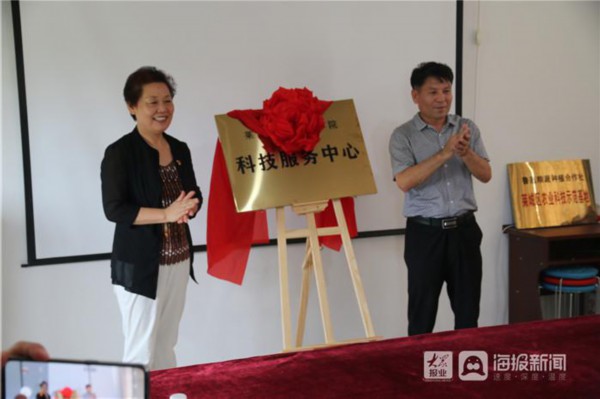 学院副院长邹翠兰与苗山镇党委副书记李传孝共同为科技服务中心揭牌