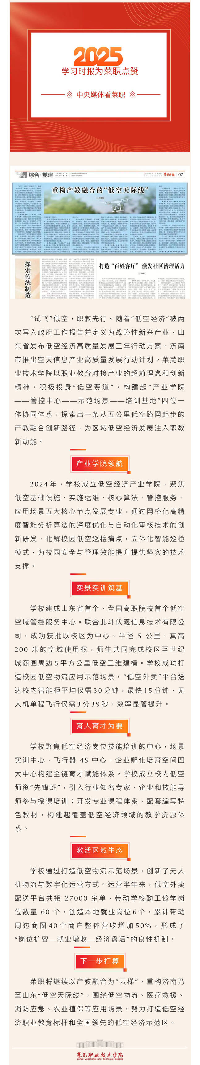 【济南广电】​ 中央媒体看莱职丨学习时报点赞莱职“低空赛道”产教融合经验做法