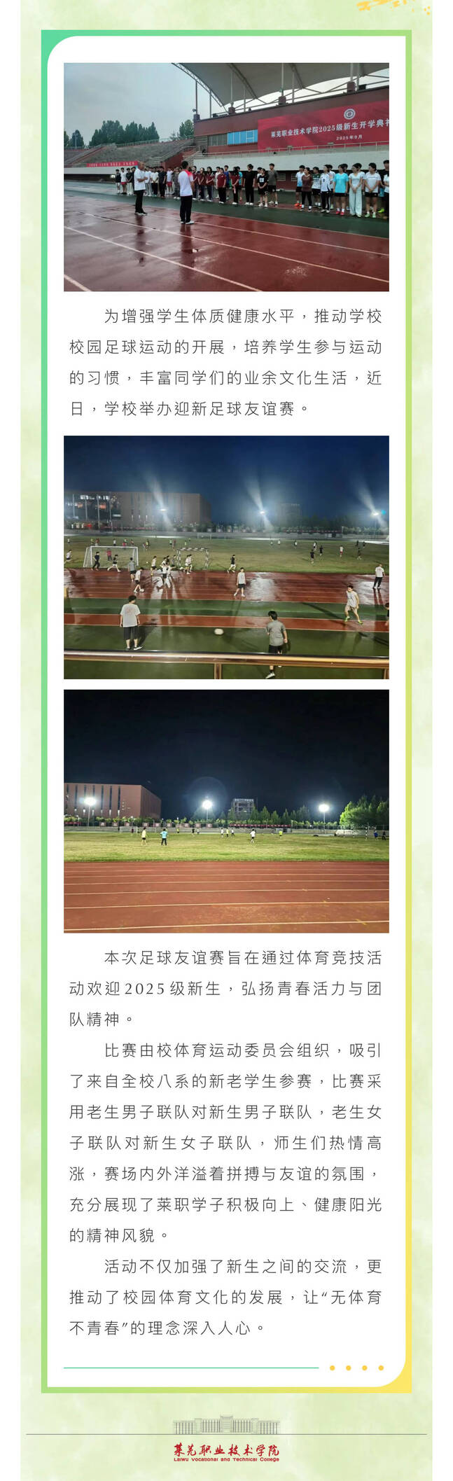 【济南广电】无体育 不青春丨莱职举办迎新足球友谊赛