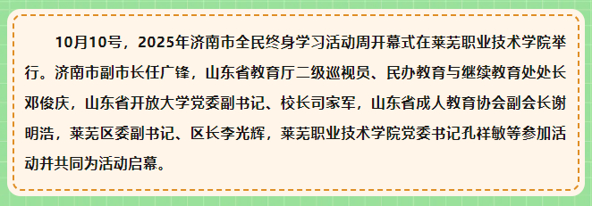 【济南广电】2025年济南市全民终身学习活动周开幕式在beat365在线唯一官网举行