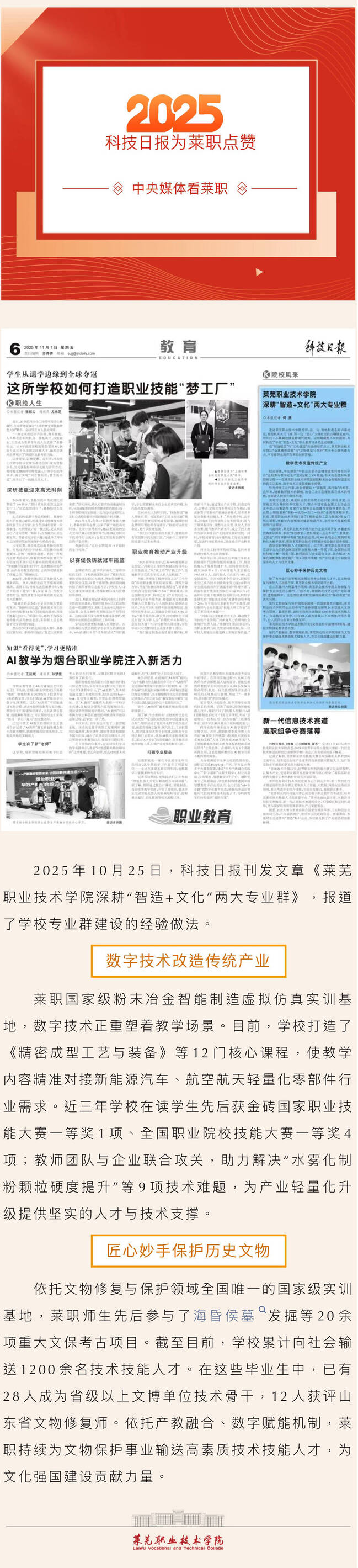 【济南广电】中央媒体看莱职丨科技日报点赞莱职专业群建设