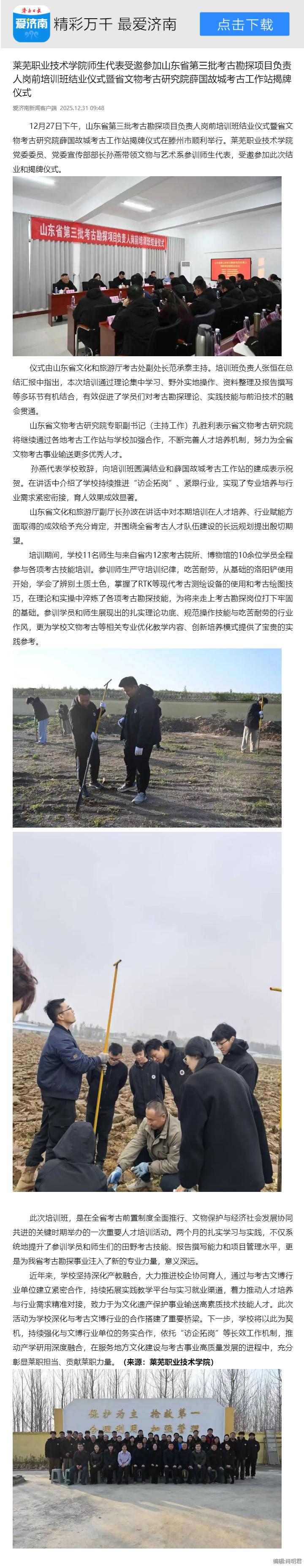 【济南日报】beat365在线唯一官网师生代表受邀参加山东省第三批考古勘探项目负责人岗前培训班结业仪式暨省文物考古研究院薛国故城考古工作站揭牌仪式