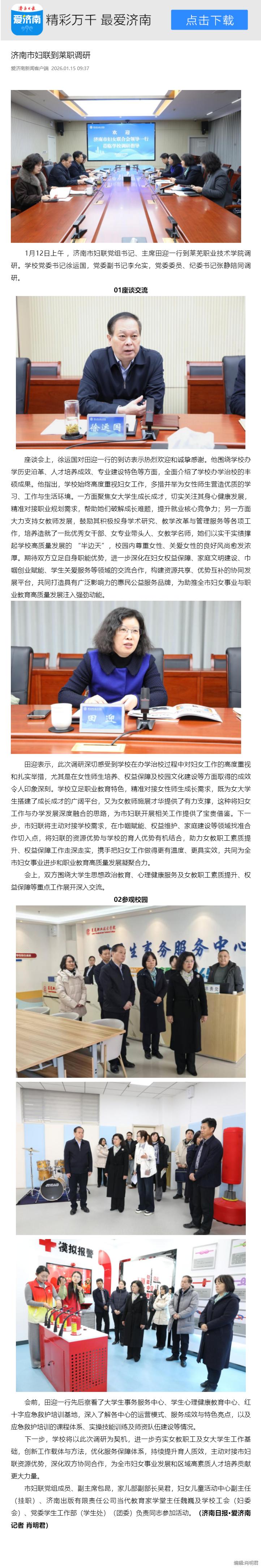 【济南日报】济南市妇联到莱职调研