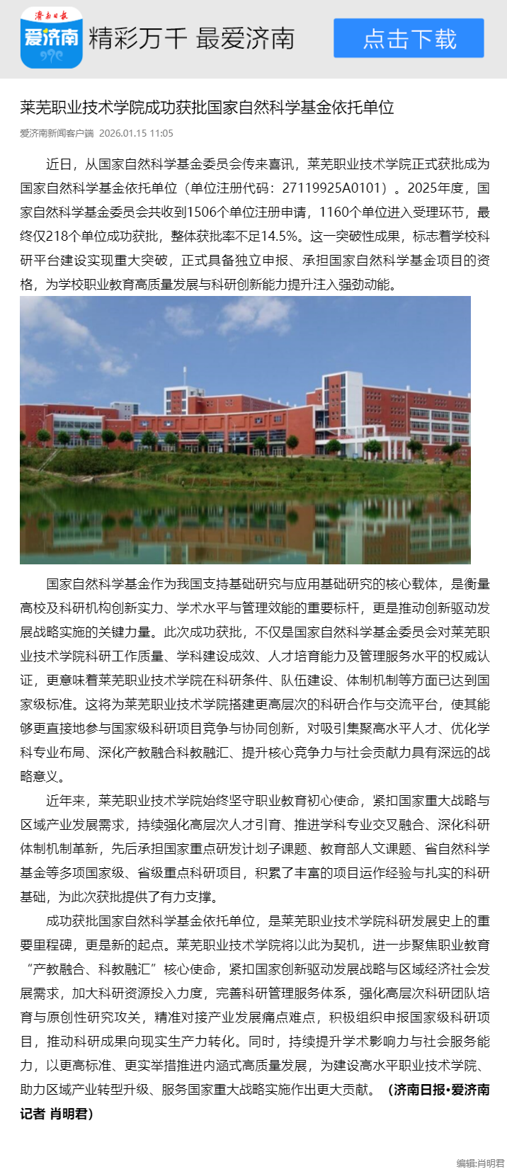 【济南日报】beat365在线唯一官网成功获批国家自然科学基金依托单位