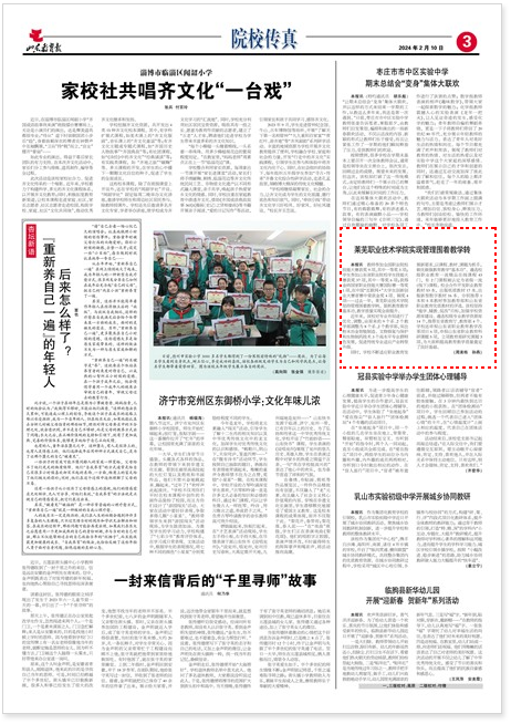 同时,学校不断适应职业教育发展新要求,以课程、教材、课题为抓手,做优做强教育教学“基本功”。遴选校级职业教育一流精品在线课程43门,有 2门课程被认定为省级一流(线下)课程。校企合作开发职业教育教材53本,出版纸质教材17本,出版新型数字教材16本。分别推荐1本和5本教材参加教育部和山东省职业教育优质教材的评选。该校坚持“能学、辅教、促改”目标,加强学校资源库建设。遴选校级专业教学资源库14个,推荐至省教育厅、教育部4个。学校还申报山东省职业教育教学改革项目6项,申报山东省职业教育科研课题5项,立项教育部研究课题3项,为大面积提高教育教学质量奠定了良好基础。