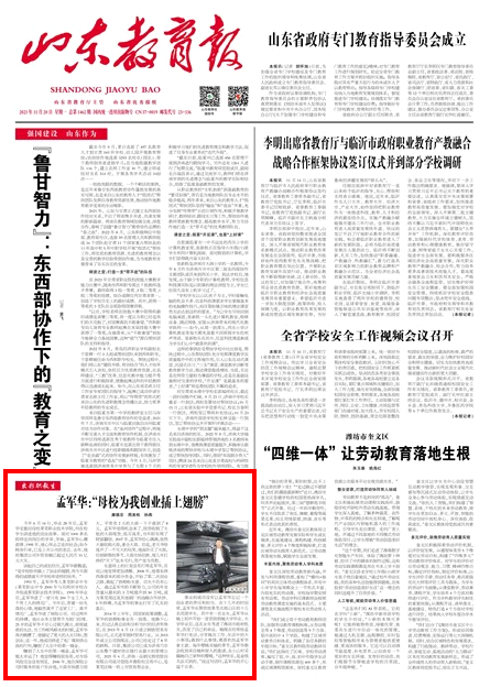 谈起自己的成长经历,孟军华感慨道:“是学校给我插上了创业的翅膀,我今天取得的成绩离不开学校和老师的培养。”