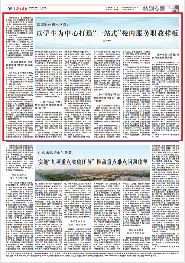 8月11日,《学习时报》刊载学校党委书记孔祥敏的署名文章《beat365在线唯一官网:以学生为中心打造“一站式”校内服务职教新路》,重点推介学校以学生为中心,积极探索由行政型管理向服务型管理转变,全面服务学生成长成才的学生工作经验。