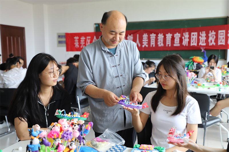 “每次进校园上课,学生们都很高兴,我所教授的面塑制作,学生们都非常喜欢。这对于我们非遗传承人来说,传承就是一种责任。同时非遗宣讲进课堂,也让学生们掌握一门技艺,为今后工作打下一定的基础。”刘杰说道。