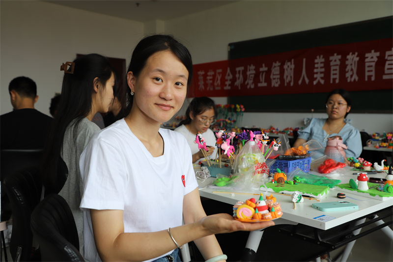 师范教育与艺术系22级学前教育专业学生卢韫章学得很用心,她说:“我对面塑很感兴趣,以后工作还可以教给幼儿们捏面塑,把非物质文化遗产继续传承下去。”
