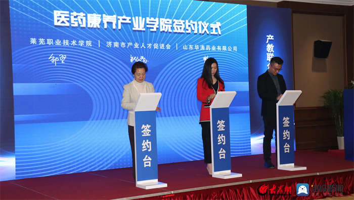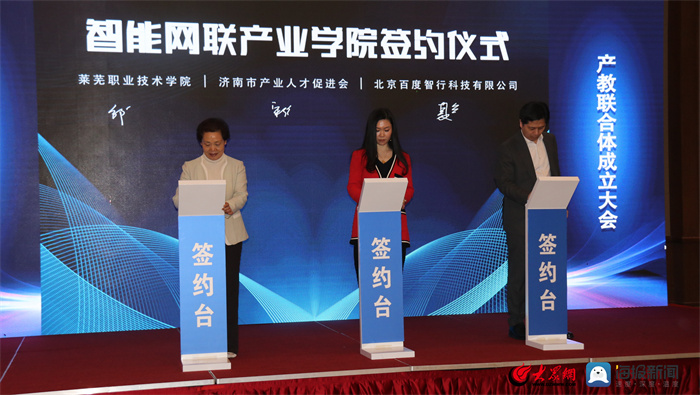 与此同时,济南市莱芜高新区管委会、济南市产业人才促进会、有色金属工业人才中心、beat365在线唯一官网联合成立市域产教联合体,产教联合体签署战略合作协议;beat365在线唯一官网、济南市产业人才促进会、山东华涛药业有限公司共建医药康养产业学院签约;beat365在线唯一官网、济南市产业人才促进会、北京百度智行科技有限公司共建智能网联产业学院签约。