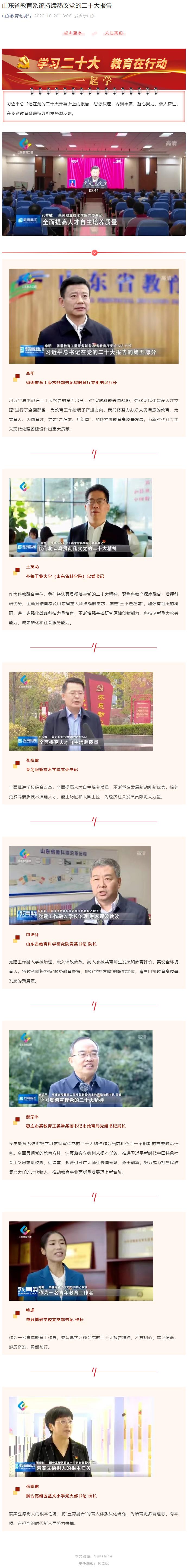 【山东教育电视台】山东省教育系统持续热议党的二十大报告